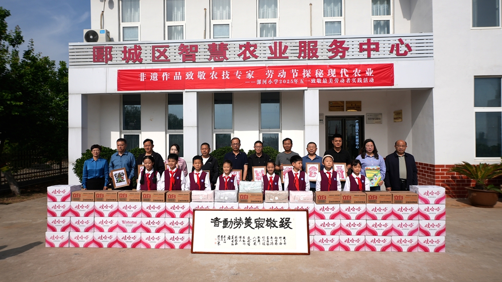 活動伊始,漯河小學(xué)學(xué)生代表王彬宇、王鈺萱、田景銳、夏華苒深情朗誦獻(xiàn)詞《致敬農(nóng)技專家》。隨后,少先隊員們將精心準(zhǔn)備的剪紙、書法、繪畫等非遺作品贈予農(nóng)技專家,以表達(dá)對這些“大地追夢人”的崇高敬意。隨后,漯河市郾城區(qū)農(nóng)業(yè)農(nóng)村局黨組書記、局長張韶杰等領(lǐng)導(dǎo)及農(nóng)業(yè)科學(xué)家團(tuán)隊代表登臺,接受這份滿含童真與感恩的心意,并與少先隊員們合影留念。