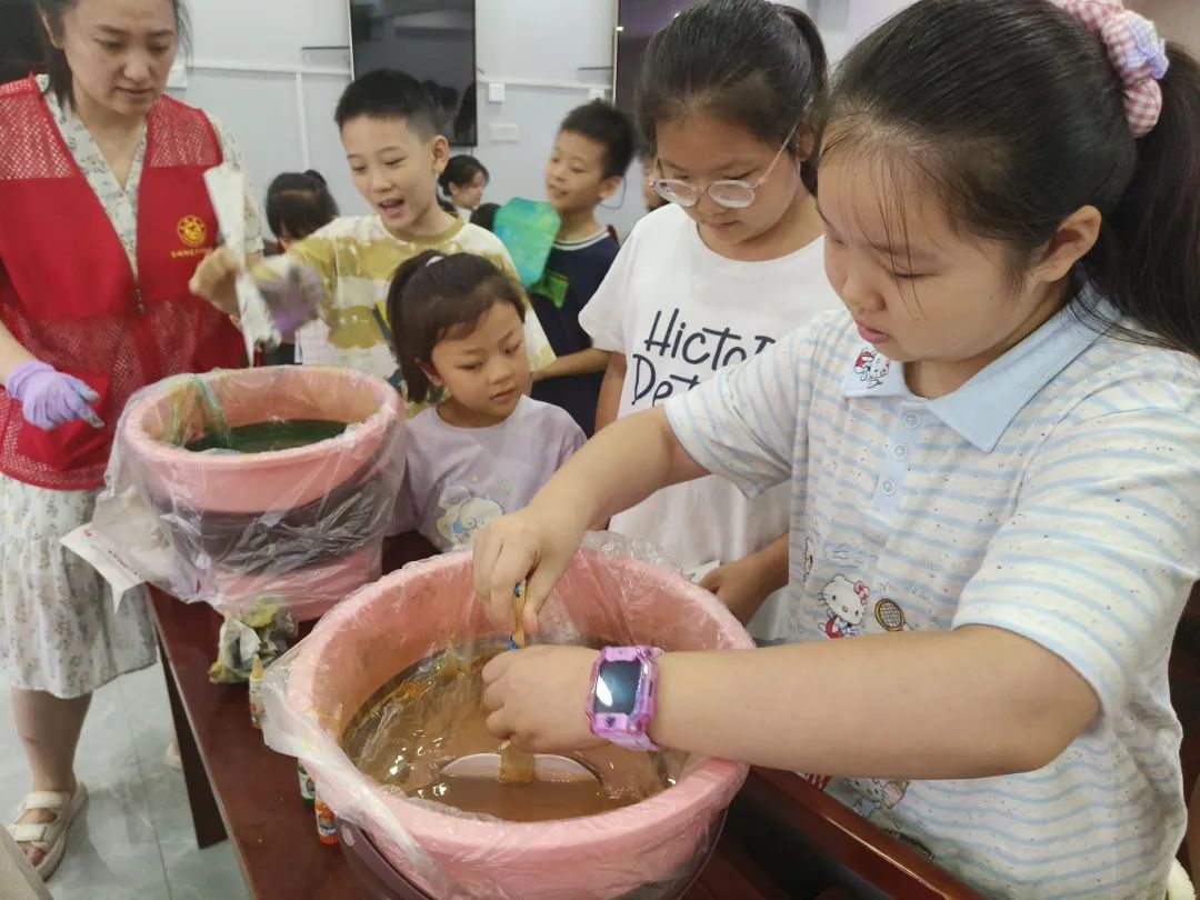 在非遺漆扇制作環(huán)節(jié),小朋友們?cè)诠ぷ魅藛T的耐心指導(dǎo)下,親手體驗(yàn)漆扇制作。大家充分發(fā)揮想象力,繪制出色彩斑斕的扇面,完成了屬于自己的特色漆扇作品,在鍛煉動(dòng)手能力的同時(shí),進(jìn)一步領(lǐng)略了非遺文化的獨(dú)特魅力。