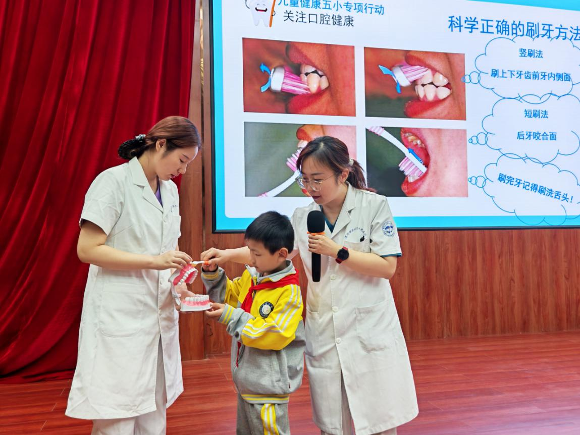 活動中,召陵區(qū)人民醫(yī)院兒童保健科楊柳醫(yī)生為孩子們帶來了一節(jié)生動有趣的健康知識課。課堂上,同學(xué)們在楊醫(yī)生的引導(dǎo)下積極互動,尤其是在刷牙規(guī)范講解環(huán)節(jié),少先隊員們踴躍參與實操演示,在趣味學(xué)習(xí)中樹立健康意識。這堂課程不僅傳遞了健康知識,更將黨對少年兒童的關(guān)懷具象為可感可知的教育服務(wù),讓紅色初心在健康育人中落地生根。