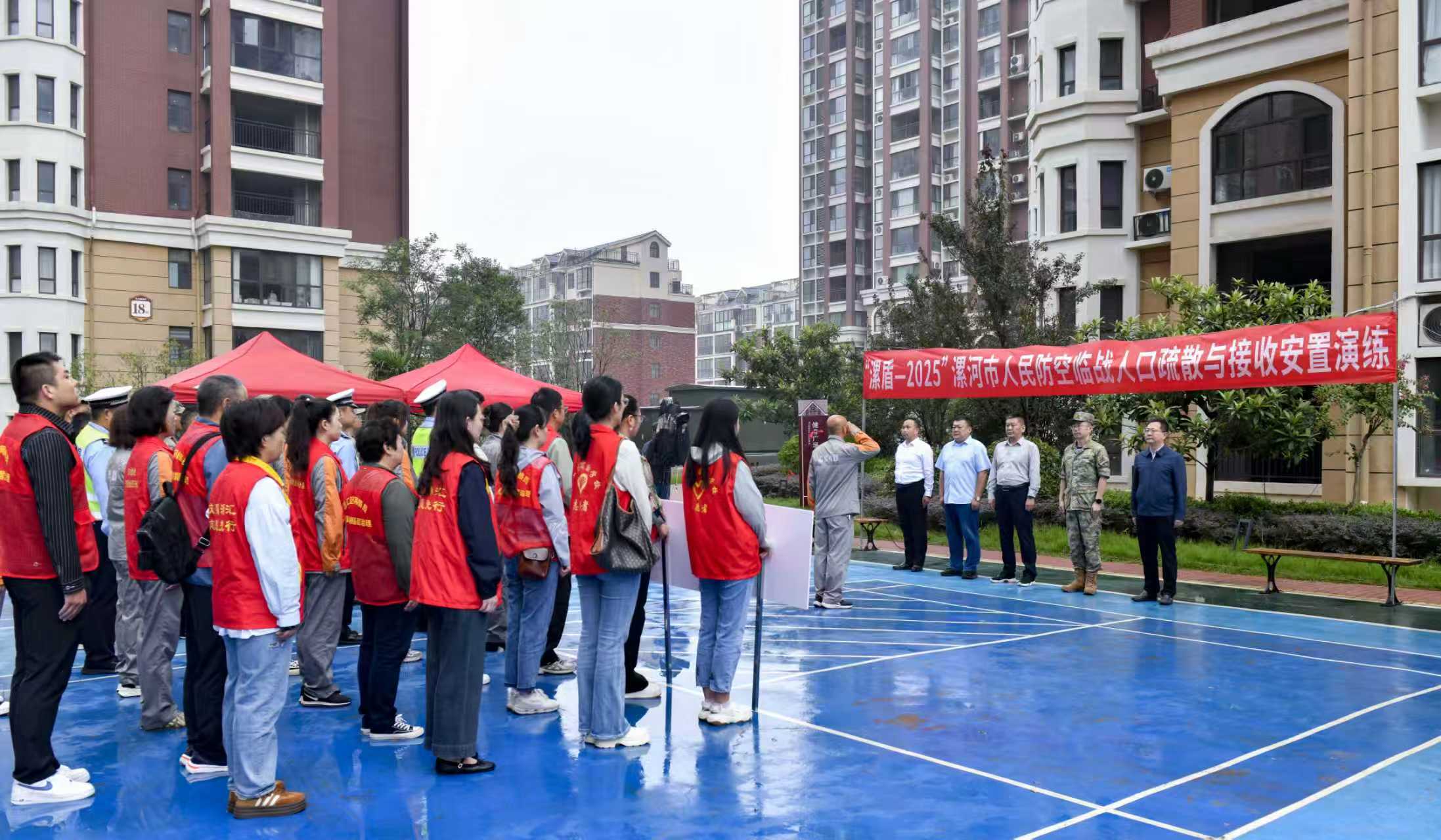 清晨的干河陳街道書香云璟小區(qū),寧靜祥和。9月12日上午9時,隨著演練指揮長、漯河市國動辦主任陳向凡一聲令下,一場高規(guī)格、大規(guī)模的人民防空臨戰(zhàn)人口疏散與接收安置實(shí)戰(zhàn)化演練正式拉開帷幕,將這片寧靜切換為一場關(guān)乎人民安全的實(shí)戰(zhàn)化考驗(yàn)。