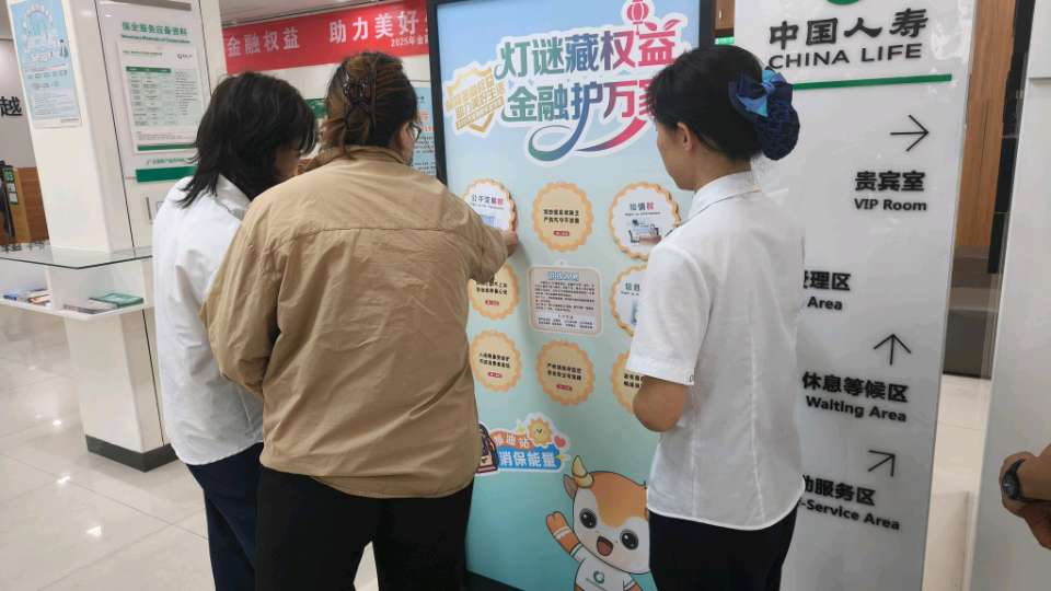 為積極響應(yīng)監(jiān)管部門(mén)的號(hào)召,切實(shí)提升社會(huì)公眾金融素養(yǎng),守護(hù)金融消費(fèi)者合法權(quán)益,在2025年9月15日至21日金融教育宣傳周期間,中國(guó)人壽壽險(xiǎn)漯河分公司在黃河路柜面消保教育宣傳基地設(shè)置“消保能量加油站”宣傳專(zhuān)區(qū),開(kāi)展“燈謎藏權(quán)益,金融護(hù)萬(wàn)家”活動(dòng)。