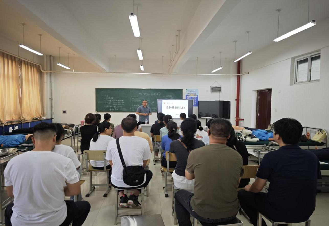 精挑細選,組建專業(yè)團隊。圍繞急救教育教學需求,從臨床醫(yī)學、護理學、口腔醫(yī)學等優(yōu)勢專業(yè),遴選一批兼具教學熱情與專業(yè)基礎的骨干教師及輔導員,組建學校首批急救教育講師團,為后續(xù)教學工作夯實人才基礎。系統(tǒng)培訓,提升教學能力。特邀漯河市紅十字會資深培訓講師擔任主講,圍繞心肺復蘇、自動體外除顫器(AED)使用、海姆立克急救法及創(chuàng)傷包扎四大核心急救模塊,開展系列化、標準化的應急救護師資專項培訓,確保講師團成員掌握專業(yè)、規(guī)范的教學與實操技能。持證上崗,嚴控教學質量。對完成培訓且通過考核的教師,學校統(tǒng)一頒發(fā)聘書,正式聘任為急救教育講師團成員,實現師資隊伍“選拔-培訓-考核-聘任”全流程規(guī)范化、制度化管理,為構建高質量校園急救教育體系奠定堅實根基。