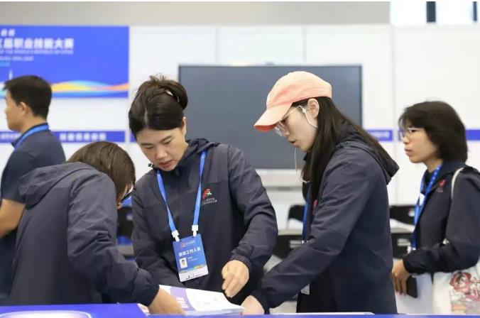 選派裁判員、賽項聯(lián)絡(luò)員及場地經(jīng)理、賽務(wù)保障人員199人提前一周趕赴鄭州,在賽場搭建、場地布置、技術(shù)支持等方面傾情助力。選拔培訓(xùn)6名賽項解說員全程駐守,解說賽項、“聲”動賽場,幫助社會大眾進(jìn)一步了解國賽、關(guān)注技能人才。