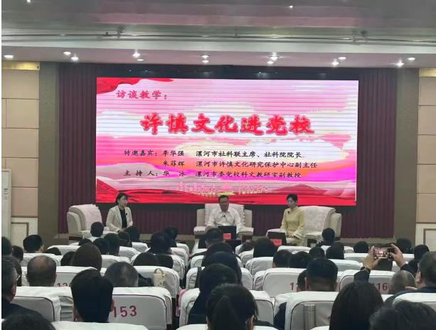 為深入學(xué)習(xí)習(xí)近平文化思想,貫徹落實(shí)中央和省委、市委關(guān)于文化建設(shè)的工作部署,推動(dòng)我市“四大本土文化”創(chuàng)造性轉(zhuǎn)化、創(chuàng)新性發(fā)展,11月6日上午,市社科聯(lián)主席、社科院院長(zhǎng)李華強(qiáng),市許慎文化研究保護(hù)中心副主任朱菲輝受邀走進(jìn)黨校秋季學(xué)期第二期主體班課堂,開(kāi)展了“許慎文化進(jìn)黨校”專題訪談教學(xué),市委黨??萍嘉幕萄惺腋敝魅巍⒏苯淌谌A冰主持。