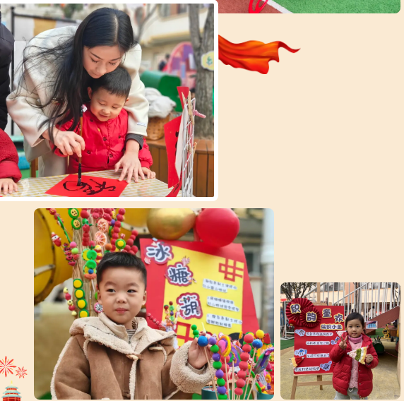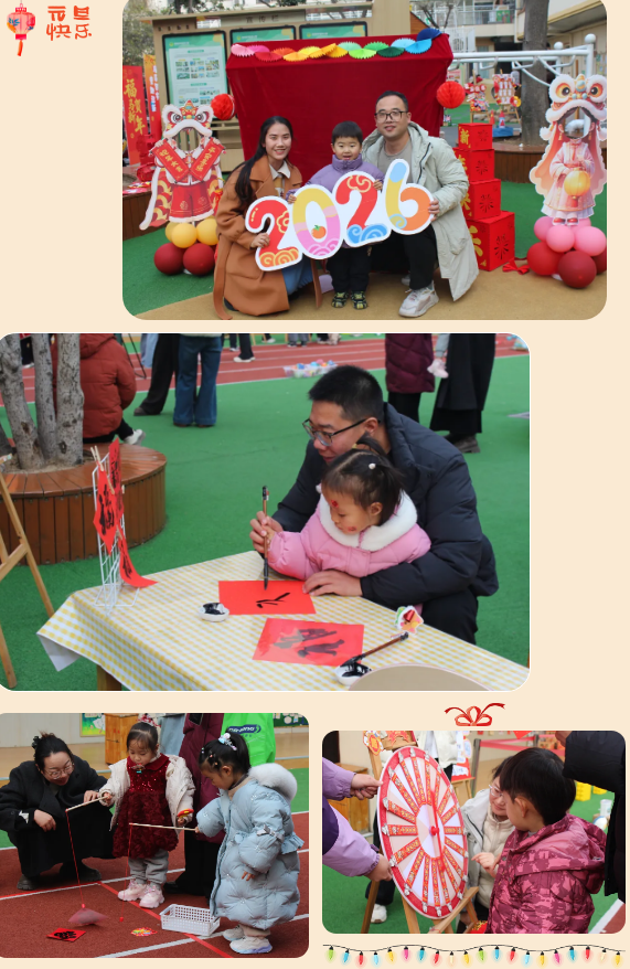 12月30日,小班“喜氣洋洋逛廟會(huì)”熱鬧開啟!寫福字、串糖葫蘆、套圈、釣魚、滾鐵環(huán)……孩子們穿梭在傳統(tǒng)游戲與趣味體驗(yàn)之間,在“捉尾巴”“照相館”“命中靶心”等活動(dòng)中盡情歡笑,感受濃濃的年俗趣味與同伴互動(dòng)的快樂。