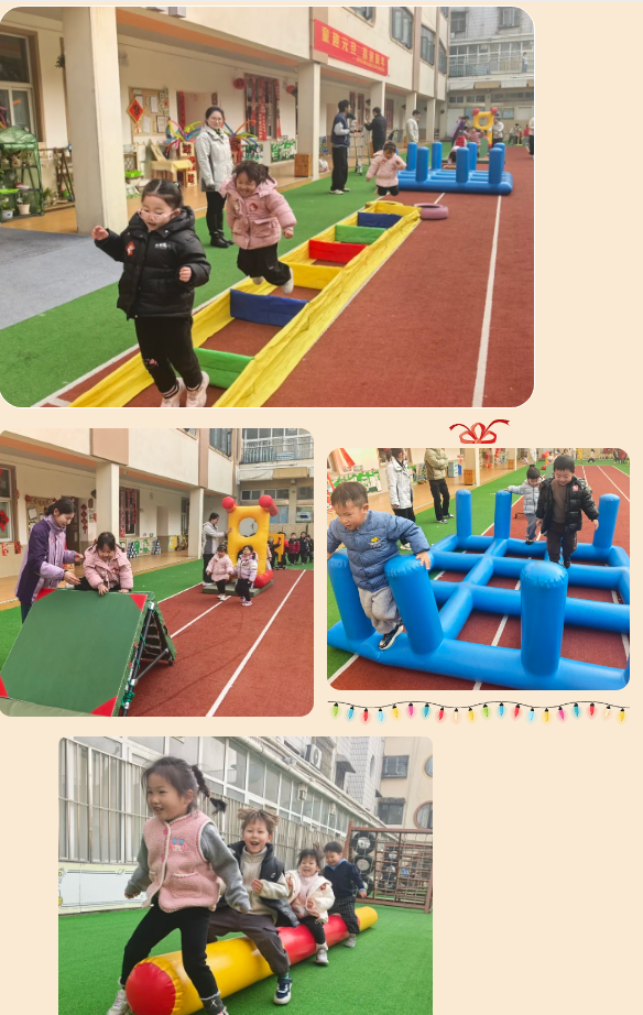 中班“小馬歡騰迎新年”別開生面的障礙循環(huán)賽活力展開。孩子們化身勇敢的“小馬”,從“馬踏新程”的匍匐鉆爬,到“小馬過河”的平衡投擲,再到“龍馬精神”的跳躍跨跑,以及“馬力全開”的綜合體能項(xiàng)目,孩子們?cè)谶B續(xù)循環(huán)中盡情奔跑、攀爬、跳躍,鍛煉體能、協(xié)調(diào)與意志,展現(xiàn)出蓬勃的朝氣與活力。