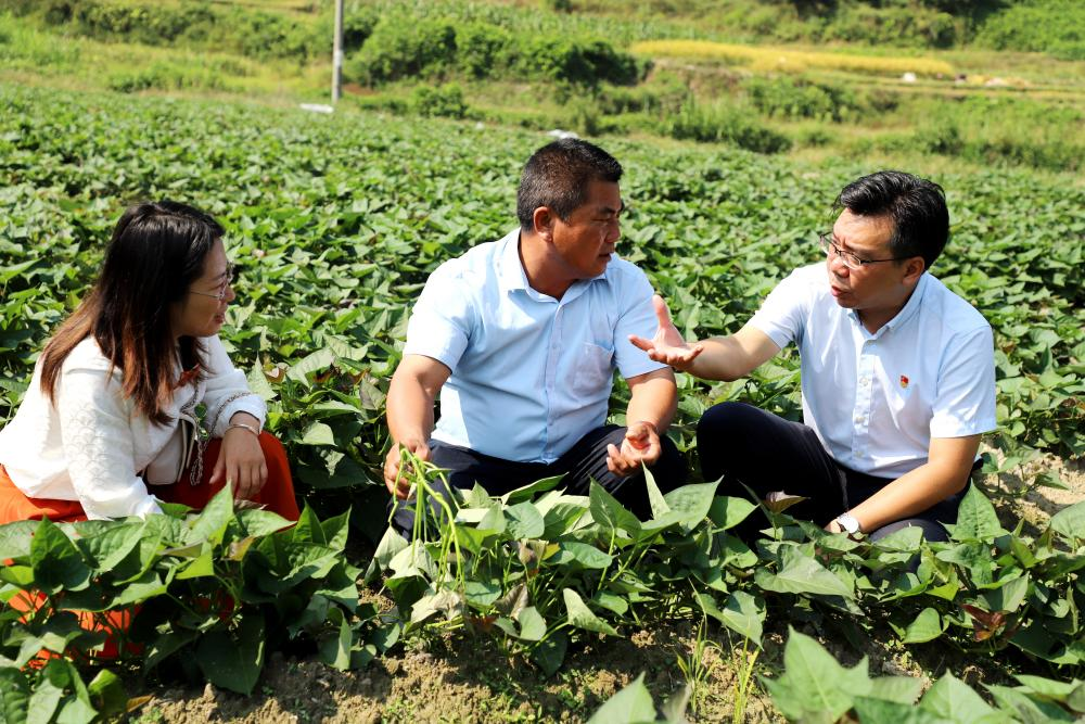 圖:駐村書記與鄉(xiāng)鎮(zhèn)干部對接通過普惠金融謀發(fā)展促增收