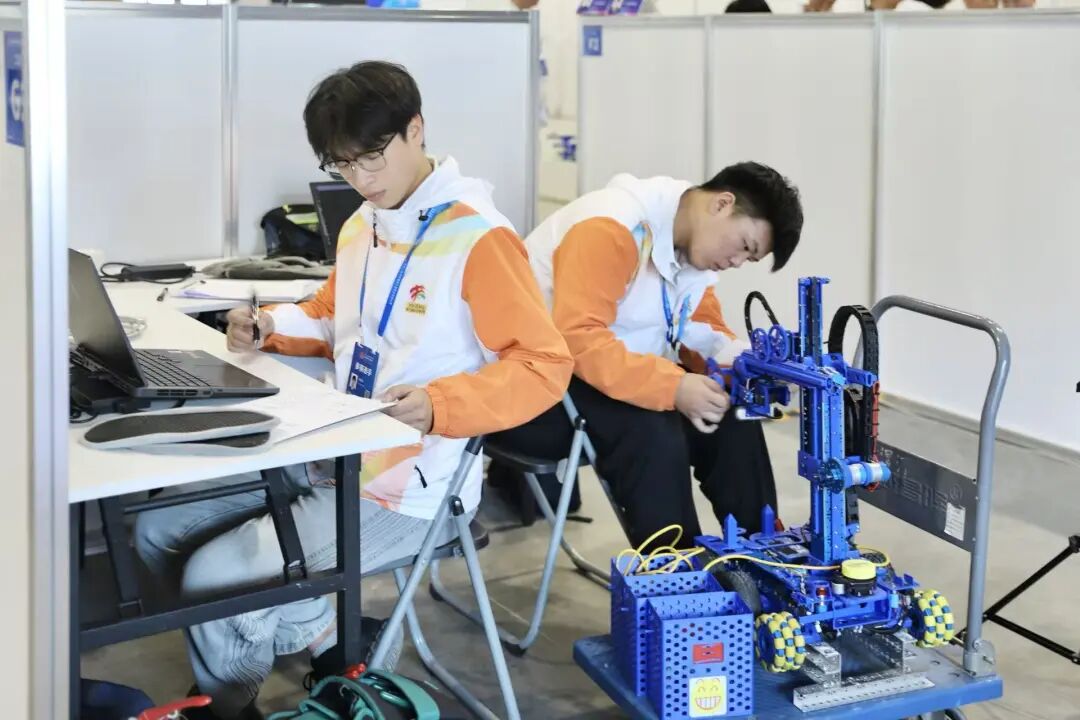 作為備戰(zhàn)第三屆全國技能大賽自主移動(dòng)機(jī)器人(世賽選拔項(xiàng)目)的選手,楊奇瑞深知,全國技能大賽的賽場沒有僥幸。自主移動(dòng)機(jī)器人項(xiàng)目技術(shù)復(fù)雜、精度要求高,涉及機(jī)械裝配、電路搭建、傳感器調(diào)試、路徑規(guī)劃與智能控制等多個(gè)模塊,容錯(cuò)率極低。一個(gè)微小的代碼錯(cuò)誤或機(jī)械偏差,就可能導(dǎo)致整套系統(tǒng)失效。省賽奪冠后,全國賽的對手更強(qiáng)、標(biāo)準(zhǔn)更高、任務(wù)更難。楊奇瑞沒有松懈,反而更加拼命。為了攻克難關(guān),他和搭檔介明鑫反復(fù)演練上百種場景,記錄上千組數(shù)據(jù),常常為解決一個(gè)問題通宵達(dá)旦。困了,就在實(shí)訓(xùn)室椅子上瞇一會(huì)兒;餓了,泡一碗面繼續(xù)干。