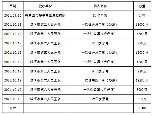 截止到101920時(shí),漯河市新冠肺炎疫情防控指揮部累計(jì)收到社會(huì)捐贈(zèng)款物價(jià)值13,661,498.4元,其中捐贈(zèng)物資價(jià)值5,575,623.88元,現(xiàn)將接受社會(huì)捐贈(zèng)款物支出分配情況公示如下: