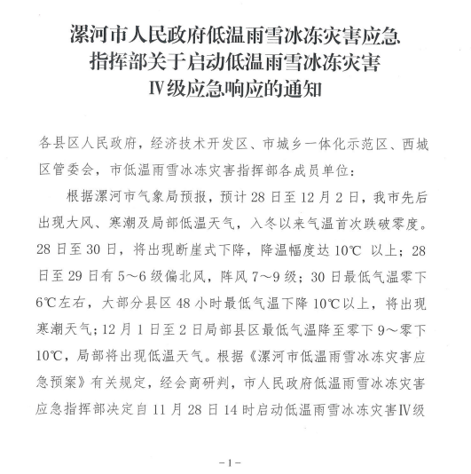 來源:漯河市人民政府低溫雨雪冰凍災害應急指揮部 時間:2022-11-28 14:10:00 點擊: