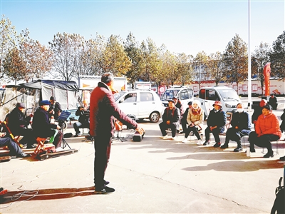 “今天風(fēng)有些大,出來看戲的人少,平時(shí)有百十人哩!”郭陳村62歲的郭記才是戲曲演出活動(dòng)發(fā)起人之一。他說:“來這里唱戲的都是‘???rsquo;。大家除了自娛自樂,還相互學(xué)習(xí)切磋。每周四下午2點(diǎn),只要天氣條件允許,村民們在這個(gè)文化廣場準(zhǔn)時(shí)開唱。”