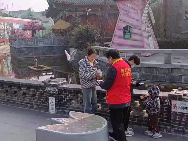 龍年春節(jié),在 河上街景區(qū)志愿者開啟新的一年文明宣傳活動(dòng)。