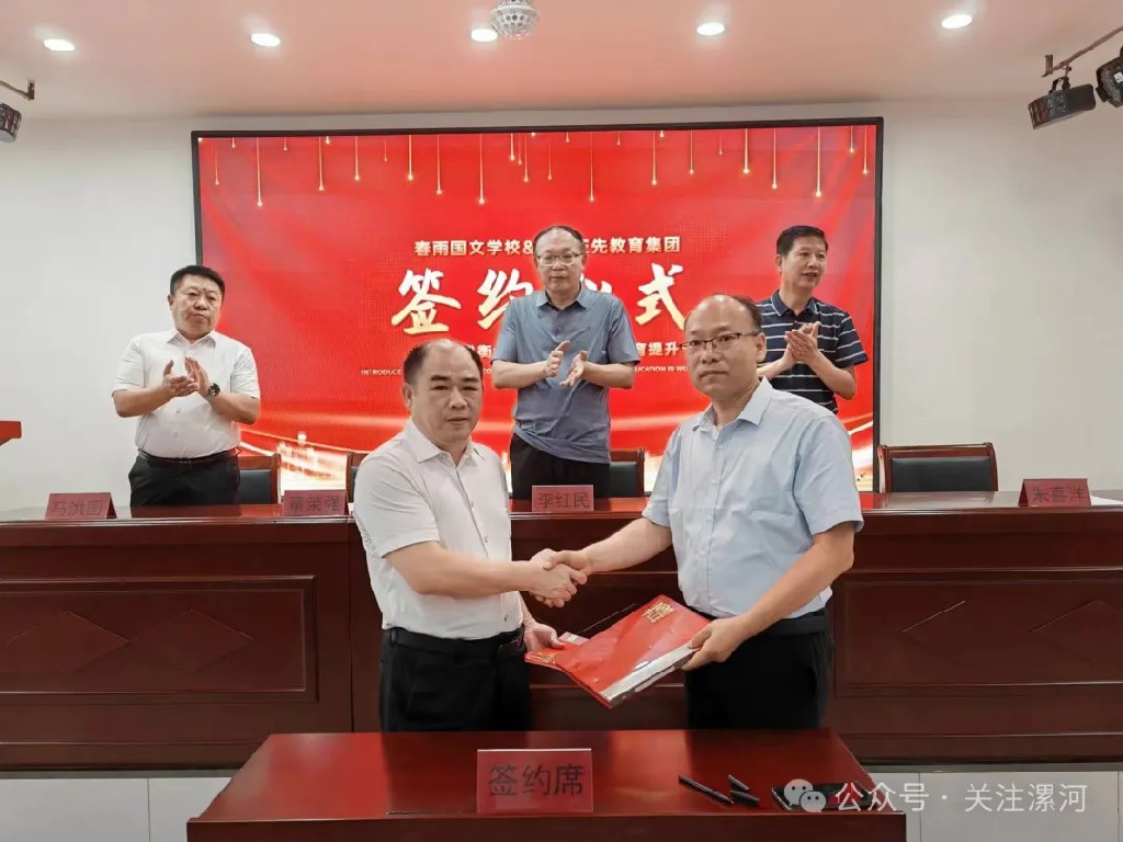 7月16號(hào)上午,舞陽春雨國文學(xué)校與河北衡水正先教育集合作簽約儀式舉行,舞陽縣教育局黨組書記、局長李紅民,副局長裴俊峰,河北衡水正先教育集團(tuán)董事長董榮強(qiáng),河北衡水志華實(shí)驗(yàn)學(xué)校副校長馬洪國,舞陽春雨國文學(xué)校校長朱喜洋出席簽約儀式。
