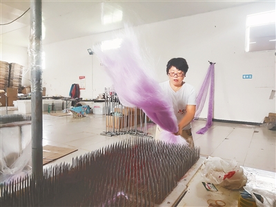 “拉發(fā)拉得好的話,每天能比別人多掙幾十塊錢。”57歲的彭美蓮正忙著拉發(fā),幾十秒后,一縷縷假發(fā)在她的手里變得井然有序。