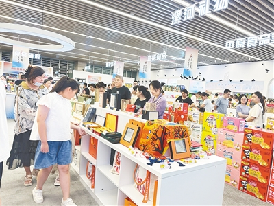 市民在中國食品名城品牌館內選購商品。
