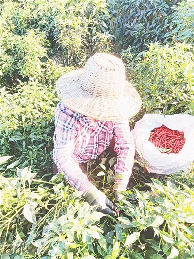 辣椒種植基地不僅讓該村村民增收,還為附近村莊的村民提供了在“家門口”就業(yè)的機(jī)會(huì)。從土地平整、栽秧到如今的采摘分揀,西軍王村及附近村莊的40多名村民在基地務(wù)工。“摘1公斤辣椒掙1塊錢。俺一天能摘70公斤,照顧老人和賺錢兩不誤。”正在摘辣椒的村民張秀琴高興地說。