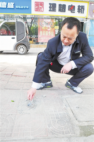看著殘留的一點鋼管,何洋說,盜走站牌的人是有備而來,他們不但切割走了站牌,還用沙子、水泥把殘留的底部蓋住。