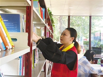 志愿者周莉漫在整理書架。