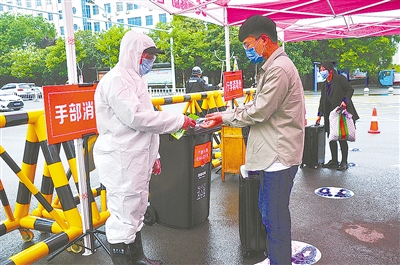 “媽媽再見(jiàn),放心吧,我會(huì)照顧好自己的!”來(lái)自許昌的程佳寶同學(xué)到了學(xué)校門口后,和爸媽擁抱惜別,然后進(jìn)入測(cè)溫消毒防疫通道,進(jìn)行身份核驗(yàn)、體溫測(cè)量、行李消毒、更換口罩、手部消毒后,進(jìn)入闊別已久的校園。