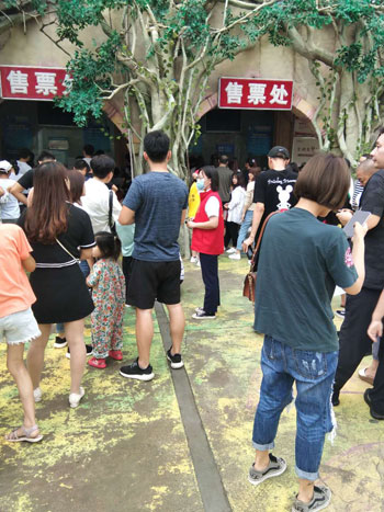十月一日,市神州鳥園志愿者引導(dǎo)游客排隊(duì)購票,做文明旅游的踐行者和傳播者。