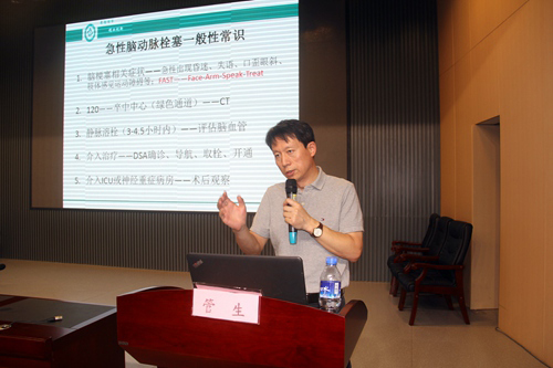隨后,鄭州大學(xué)第一附屬醫(yī)院心血管內(nèi)科專家李凌教授熱情洋溢地講述了《急性左心衰診治進(jìn)展》,并結(jié)合自身經(jīng)驗(yàn)及最新心衰指南,深入淺出地介紹了“急性左心衰”的診療思路,詳細(xì)地論述了該病應(yīng)如何去治?如何去防。神經(jīng)介入科專家管生教授幽默風(fēng)趣地從神經(jīng)介入方向介紹了《心血管醫(yī)生應(yīng)該了解的腦血管那些事》,并提出了“心腦同診、心腦同治”的新思路,為我市心腦血管的發(fā)展及防治提供了新的借鑒與思考。最后,心血管內(nèi)科專家陶海龍教授細(xì)致、全面地介紹了“房顫的規(guī)范化治療”,他從“歷年指南房顫的治療要點(diǎn)、經(jīng)典病例及房顫的介入治療”等方面闡釋了相關(guān)問題,為大家對(duì)房顫的治療及卒中的預(yù)防提供了新的思考。