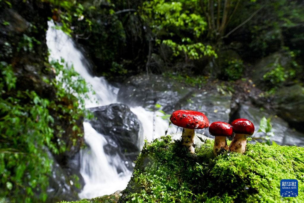 7月2日,在云南省大理白族自治州南澗彝族自治縣公郎鎮(zhèn)自強(qiáng)村無量山中拍攝的大紅菌。