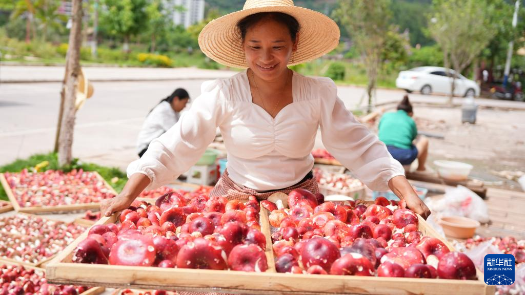 7月2日,在云南省普洱市鎮(zhèn)沅彝族哈尼族拉祜族自治縣恩樂鎮(zhèn)一家野生菌收購合作社,工人們忙著將野生紅菌清洗干凈晾曬。