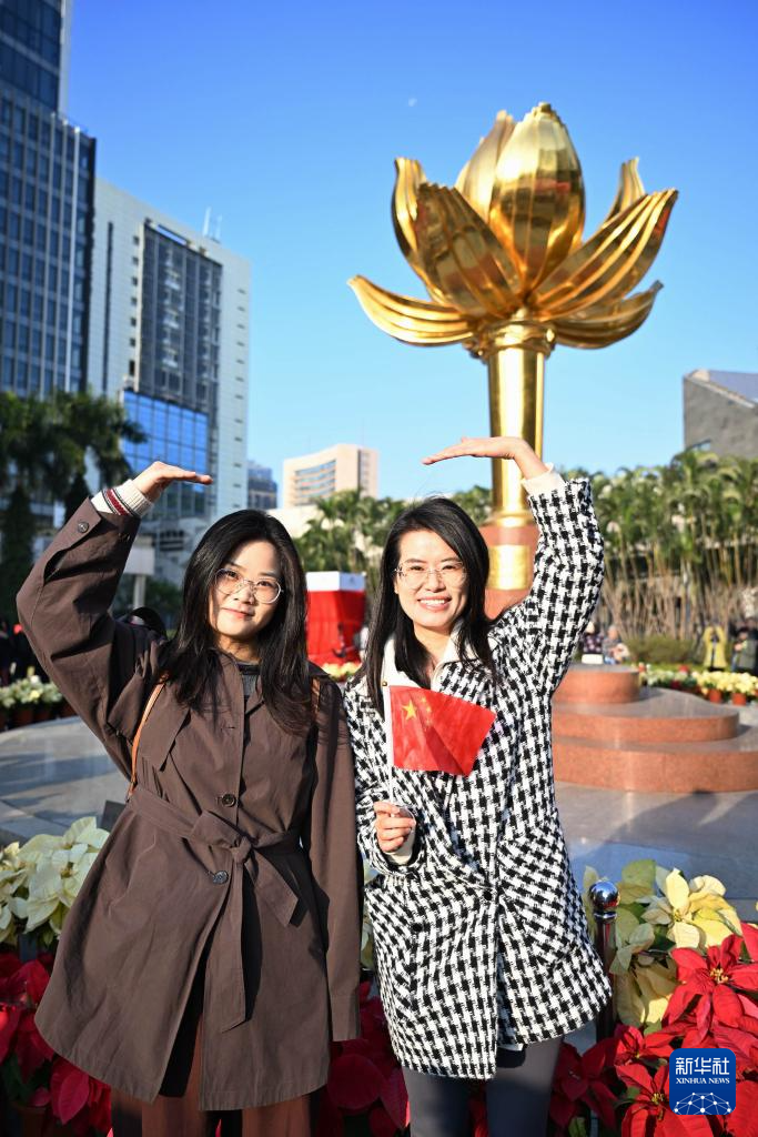 12月20日,澳門特別行政區(qū)政府隆重舉行升旗儀式,慶祝澳門回歸祖國25周年。這是人們?cè)谟^看升旗儀式后留影。