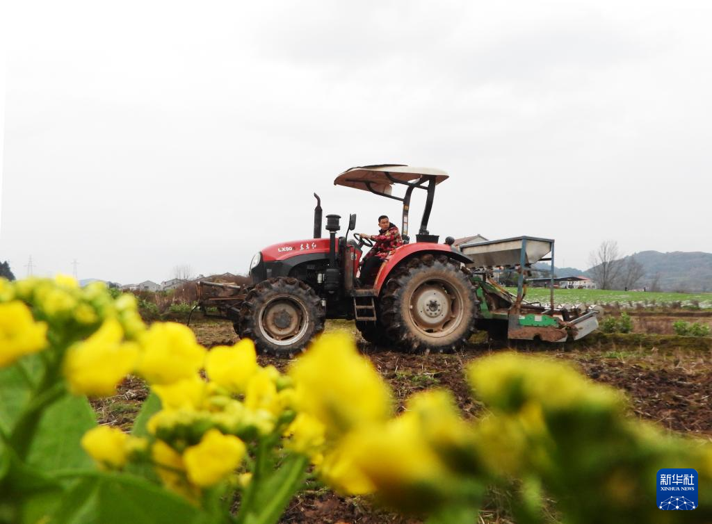 2月7日,在四川省達(dá)州市渠縣臨巴鎮(zhèn)四面村,村民駕駛農(nóng)機(jī)翻田準(zhǔn)備播種玉米。