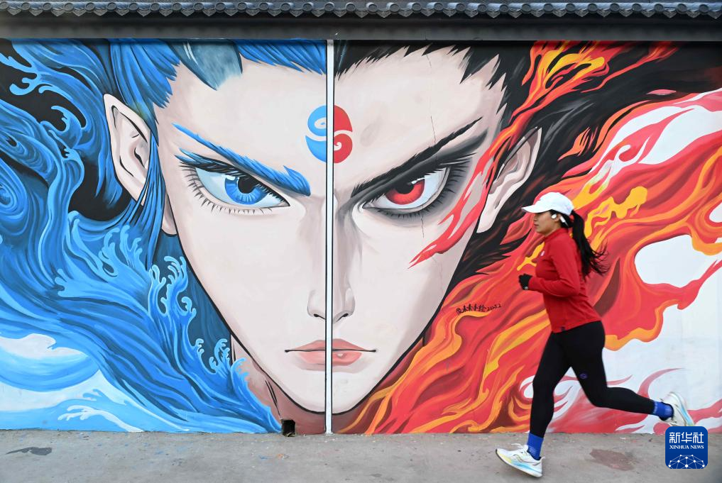 2月15日,市民從石家莊市裕華區(qū)一處哪吒主題墻繪前路過(guò)。