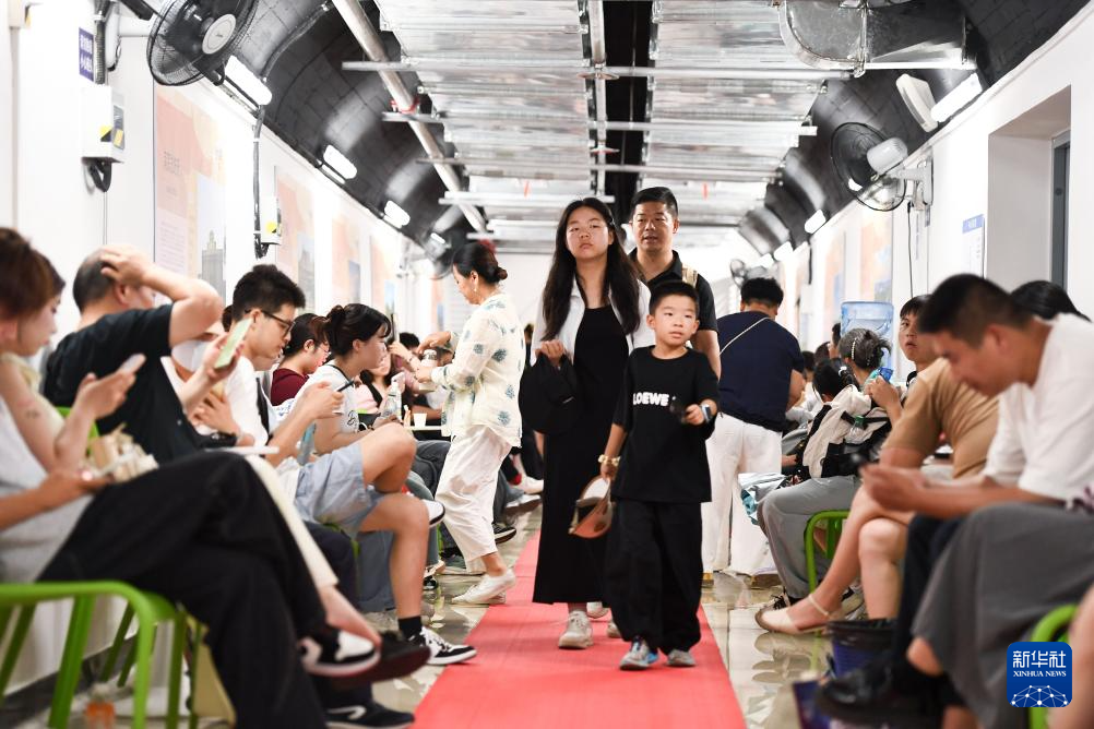 7月13日,人們在南京北極巖人防工程避暑納涼。