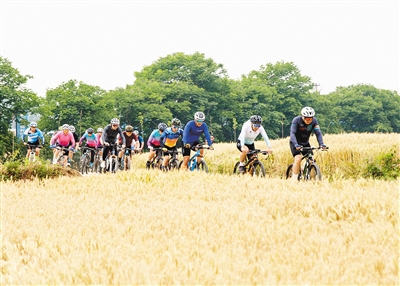 五月的沙河國家濕地公園碧水環(huán)繞、綠樹成蔭,處處鳥語花香,充滿了自然之美。一輛輛自行車在田間小路和林蔭小道中排成一條快速行進(jìn)的直線,選手們嗅著麥香,你追我趕、肆意馳騁。