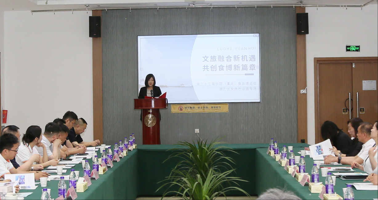 齊琳同志圍繞源匯區(qū)文旅產(chǎn)業(yè)發(fā)展現(xiàn)狀及優(yōu)勢作了專題宣傳推介,簡要介紹近年來源匯區(qū)堅持“文化點亮城市、產(chǎn)業(yè)彰顯特色、創(chuàng)新引領未來”發(fā)展理念,立足“文商旅創(chuàng)融合中心區(qū)”發(fā)展定位,高起點站位、高標準謀劃、高質量推進,做好文旅文創(chuàng)融合文章,積極培育文旅文創(chuàng)消費新業(yè)態(tài)新場景,全力推動文旅產(chǎn)業(yè)鏈項目建設,走出一條以文化人、以文興業(yè)的新路子。最后表示將以此次食博盛會為契機,以文旅融合為抓手,以食品文化為貫穿,依托轄區(qū)河上街景區(qū)和漯灣古鎮(zhèn)超高人氣和特色資源優(yōu)勢,持續(xù)豐富旅游產(chǎn)品和旅游供給,激發(fā)消費潛力,提升文化能級,擦亮文商旅創(chuàng)融合新名片,傾力將源匯區(qū)打造成“在者舒心、來者傾心、聞者動心”的全國知名文化旅游目的地。